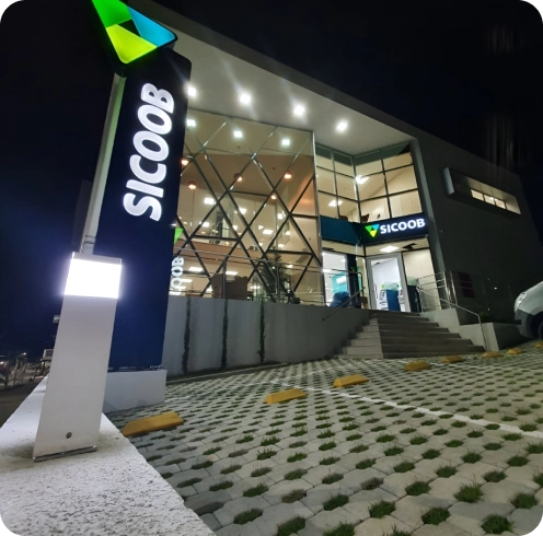 Edifício Agência Cooperativa Bancária, com foco em Funcionalidade. Construção do edifício e acabamentos finais.
